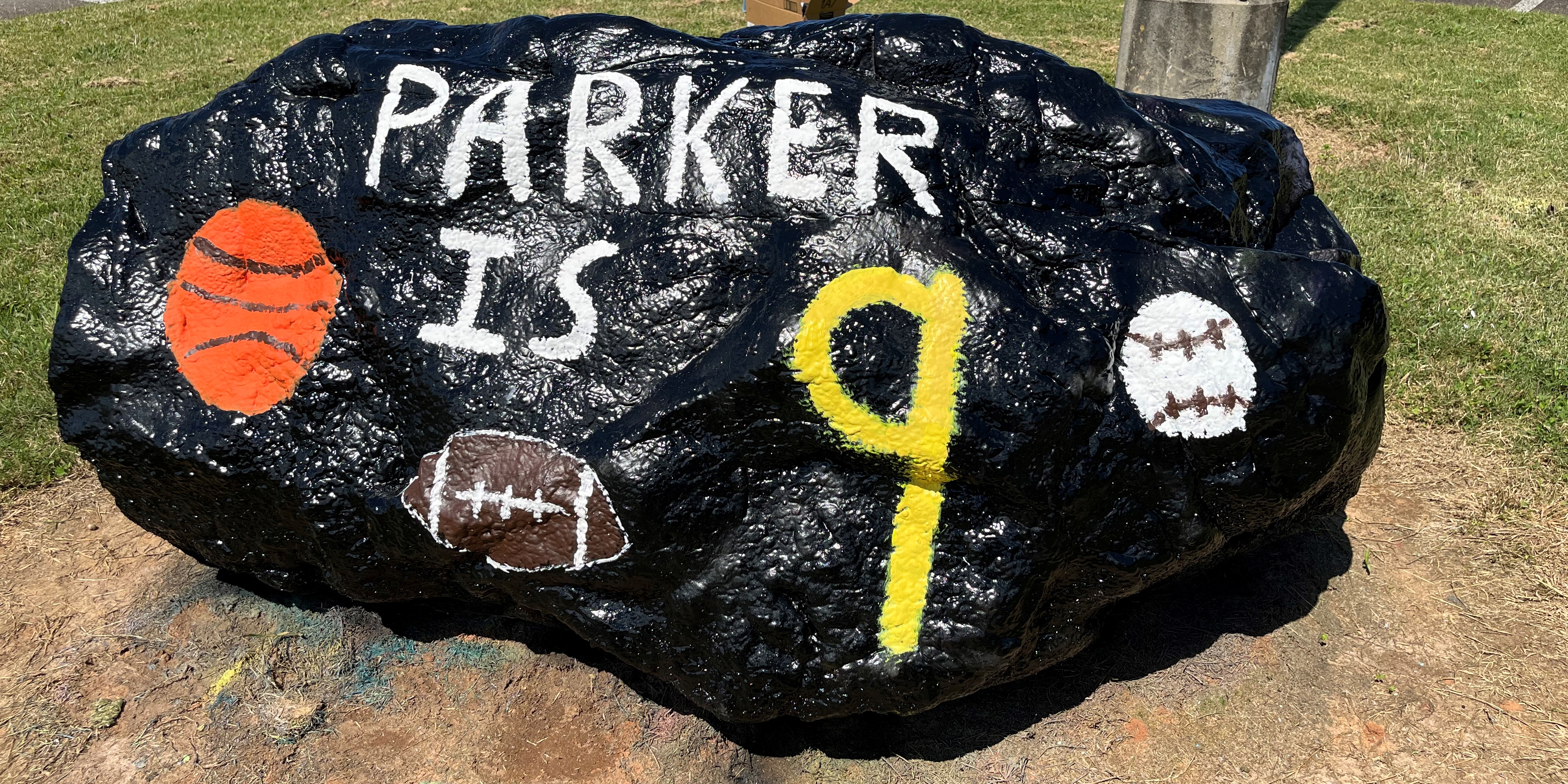 Does your school or town have one of those big rocks that you can rent and paint a message? Our school got one a couple of years ago, and I was able to rent them for two of my kids’ birthdays this year. I signed up for it and didn’t think much about it… until the panic of “how do I do this??” set in a few days before.
