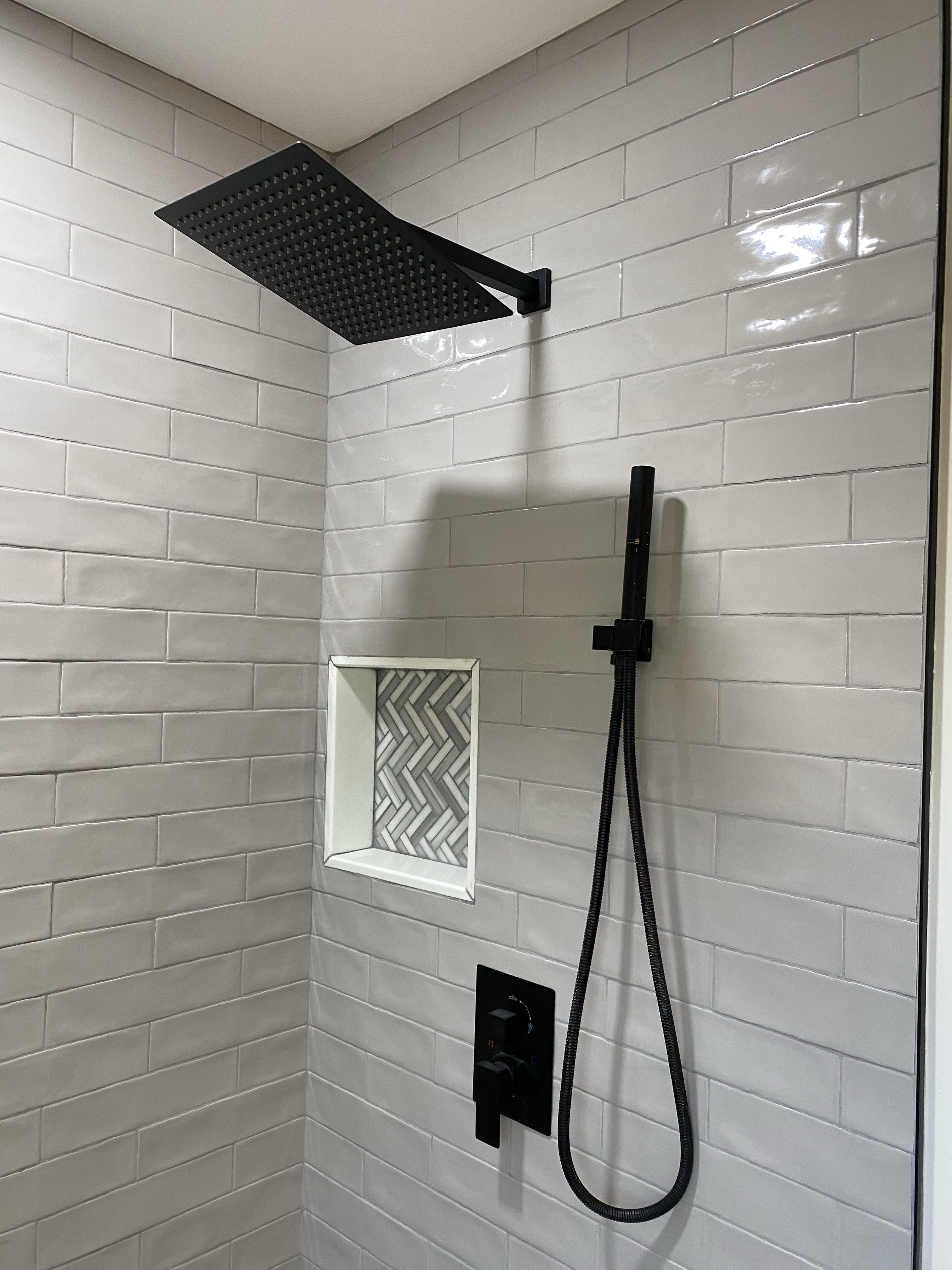 Remember how my sister’s master bathroom in her 1950s home was being updated? It’s still not quite finished (they are waiting on the cabinet doors and drawer fronts for the vanity), but I wanted to update you with the latest!