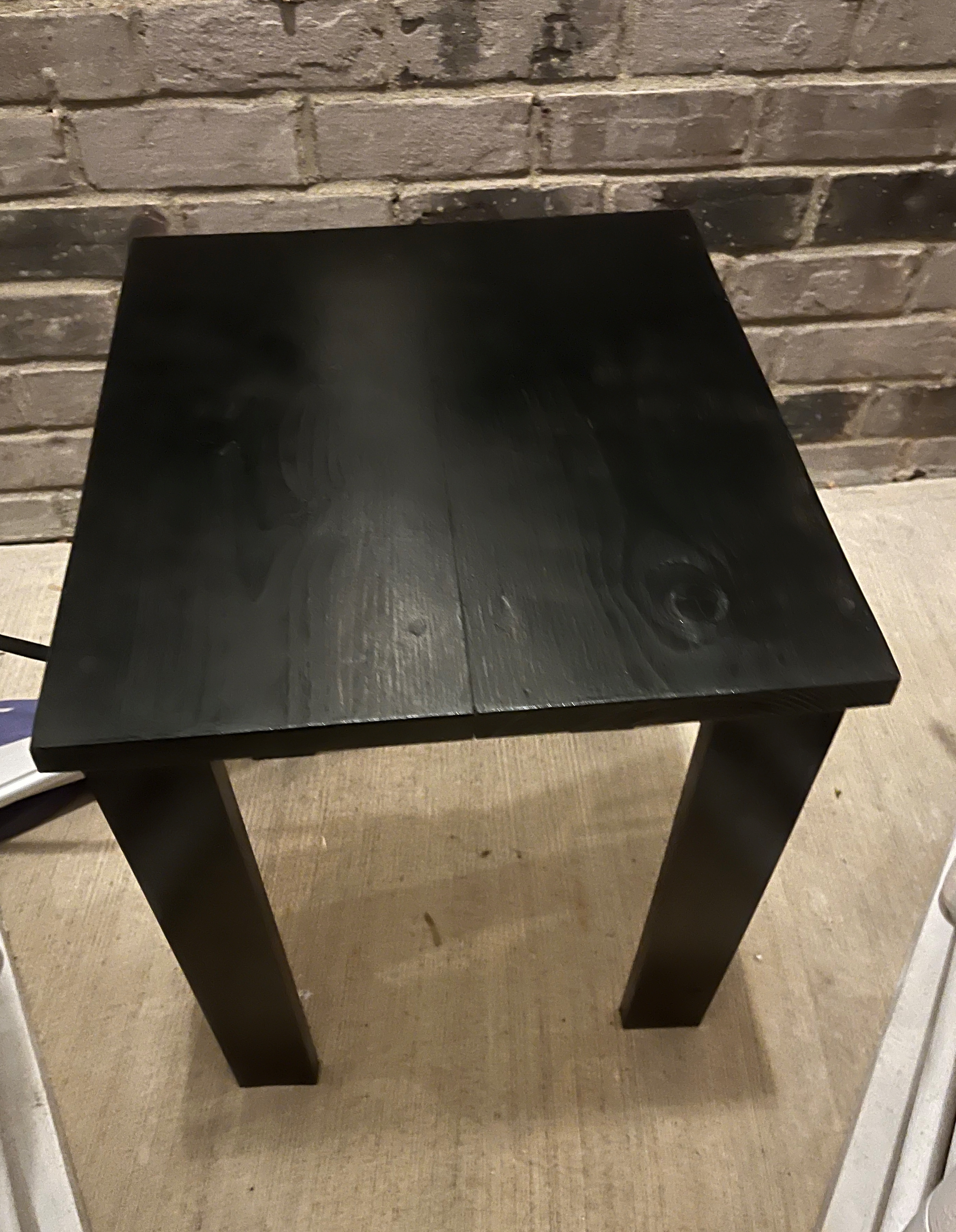 I then wood-glued the legs on, and then screwed 2″ screws down in the frame to secure the legs in place.