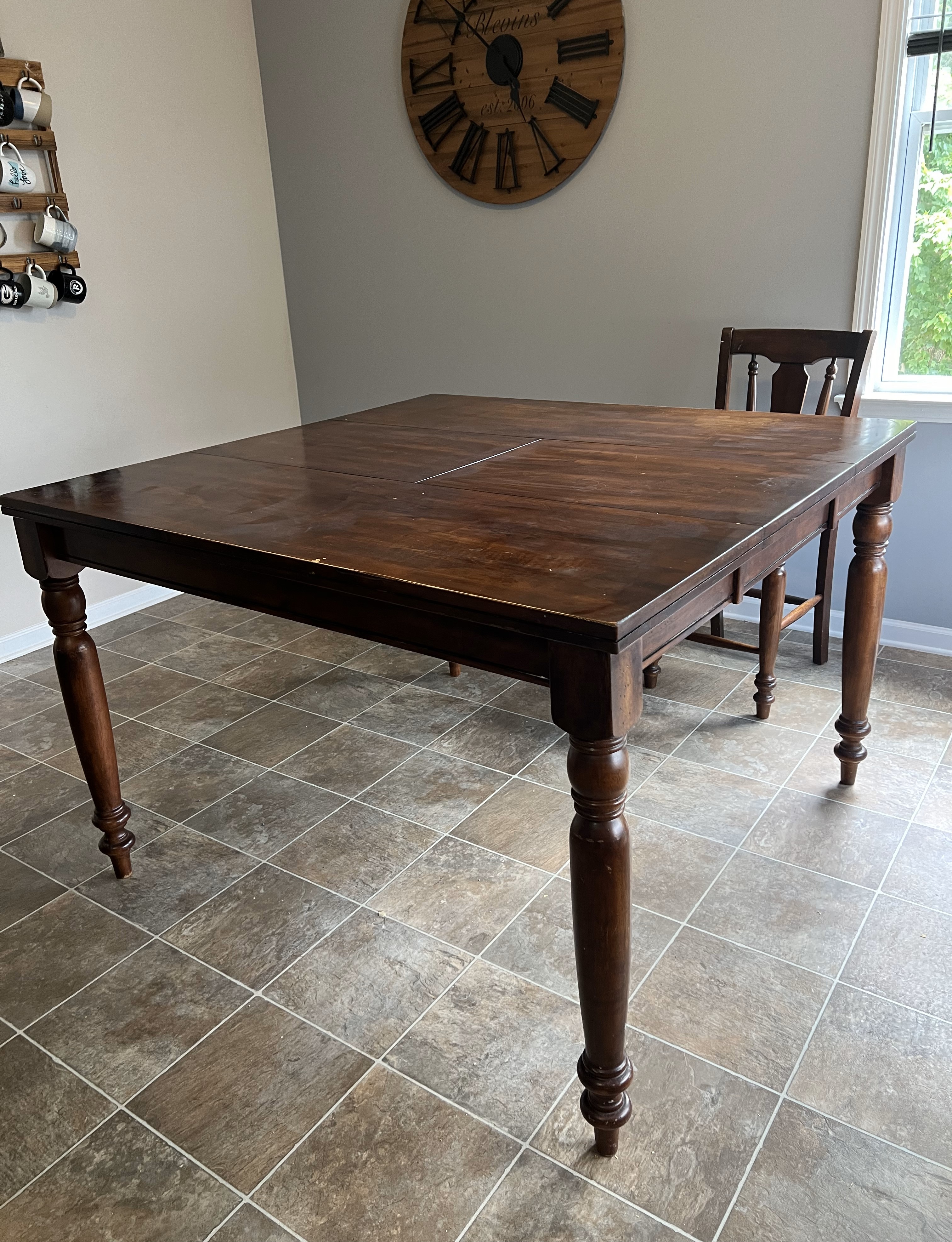 So, unfortunately, that middle panel of the table needed to be re-sanded… but she got it done and it was back to how it was before staining!