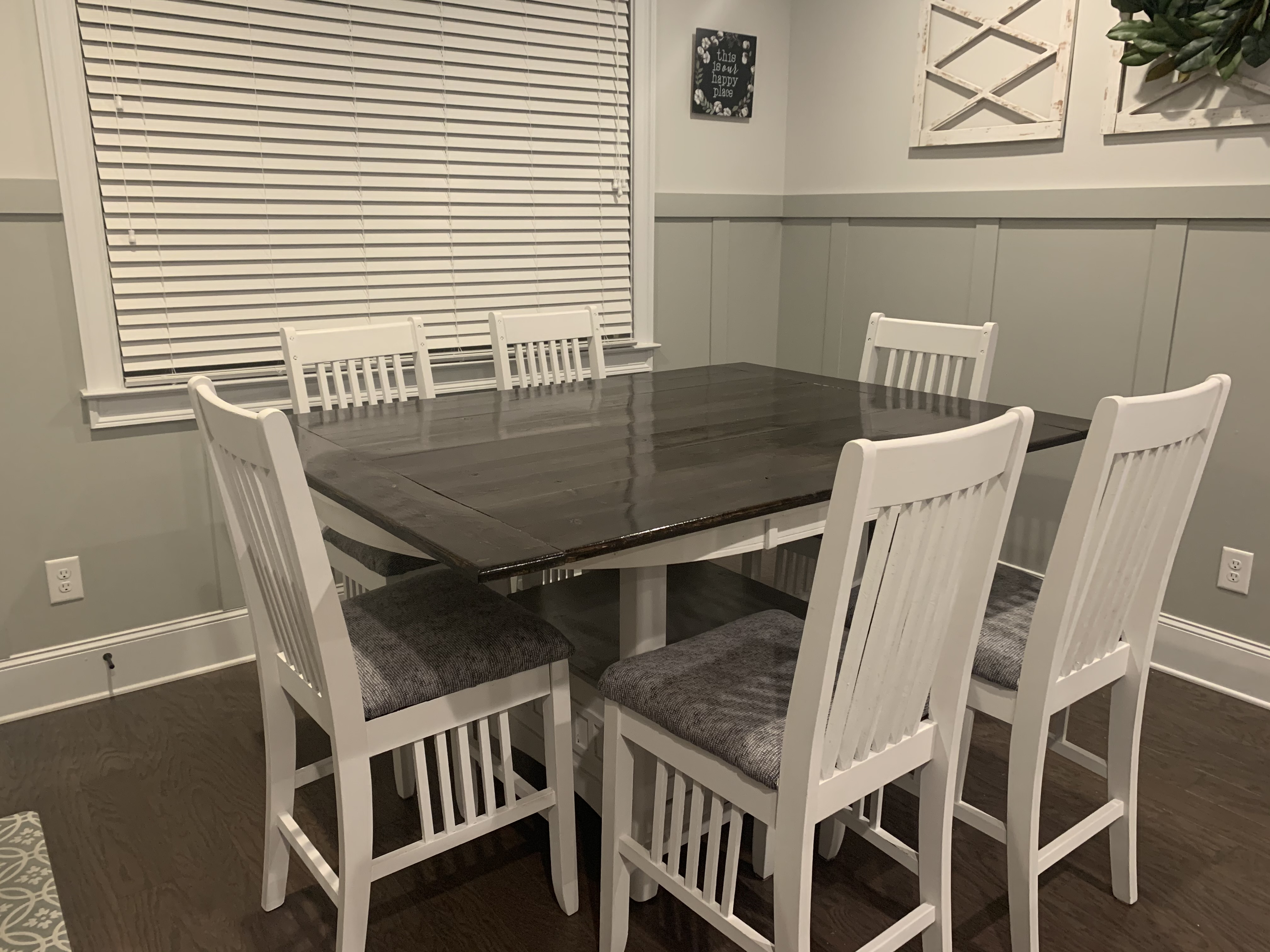It’s such a nice feeling to have the feel of a new piece of furniture while being able to utilize an old piece of furniture. This whole project cost us about $80 in wood and $18 in paint… so less than $100 for a “new” table!